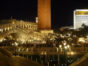 Hotel Treasure con los canales del Hotel Venetian en primer plano.