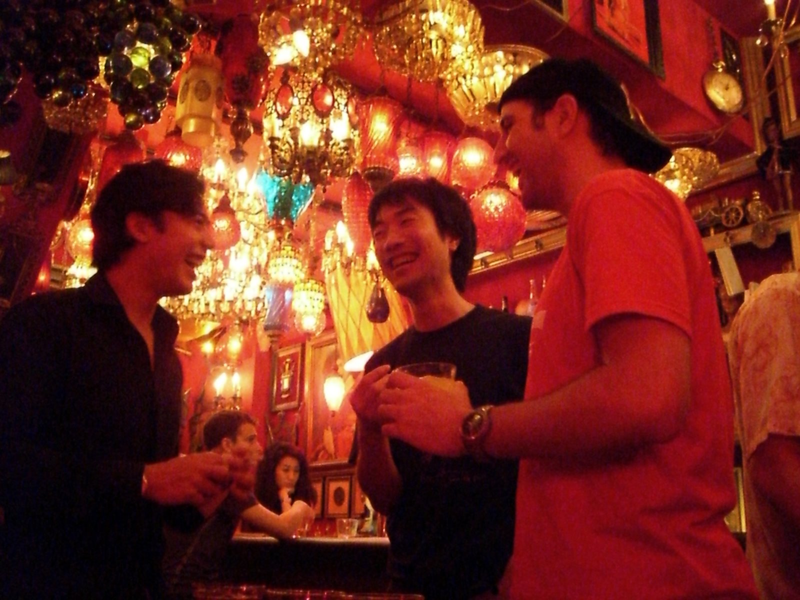 Para beber, este sitio no tiene nombre, y es que de verdad no tiene nombre. Para los amigos es EL SITIO DE LAS LÁMPARAS, adivinais por qué ¿verdad? Buscad una puerta pequeña en un callejón oscuro en sentido contrario al 109 y allí mismo está. Copas a 500 yenes, o lo que es lo mismo, unos 3 euros, teniendo en cuenta que la proporción de alcohol es bastante diferente que en España.