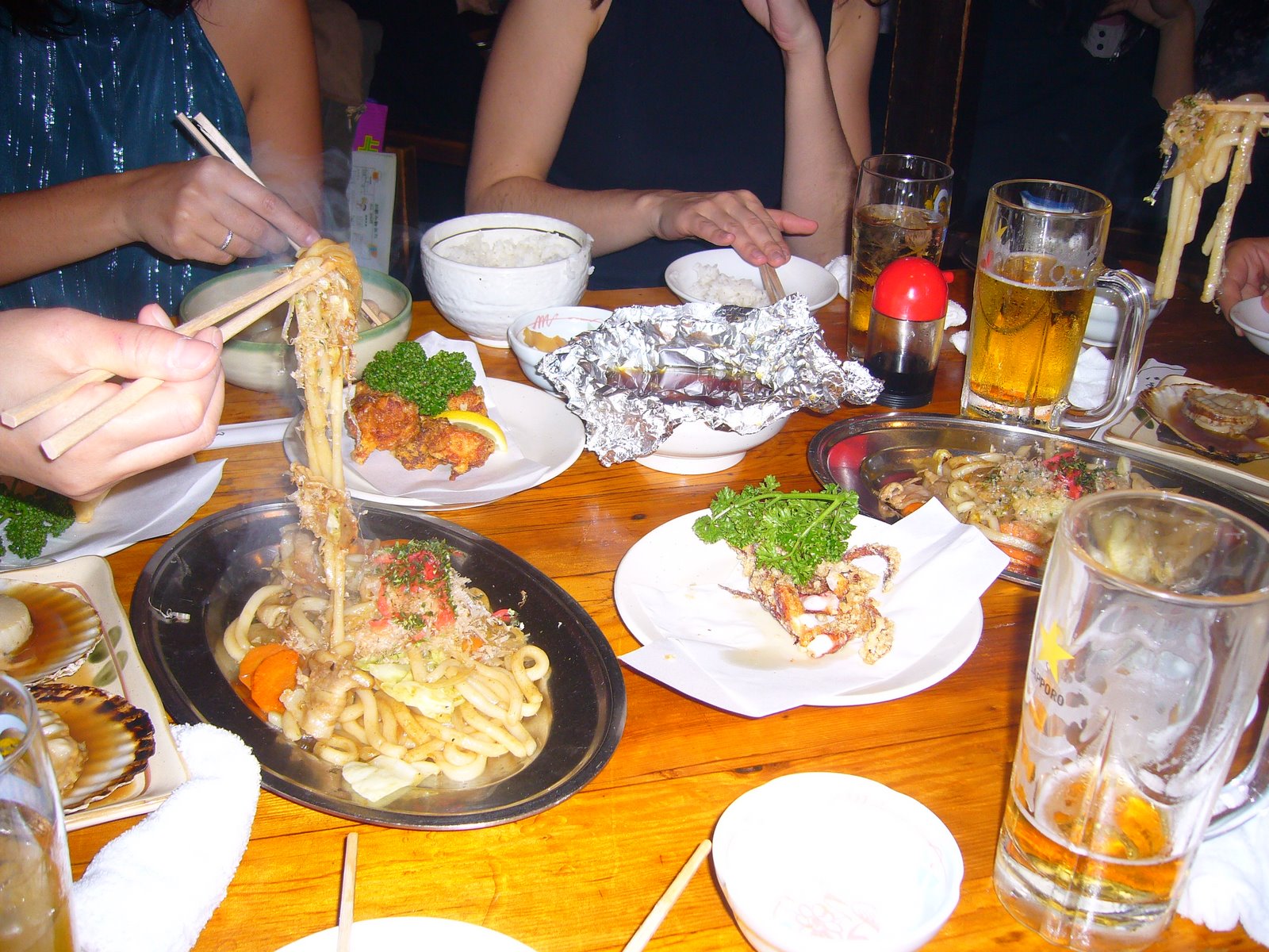 Para comer: NIHONKAI (Kutreizakaya para los amigos), una izakaya (taberna tradicional japonesa) en la que los platos suelen costar prácticamente todos 300 yenes, menos de 2 euros. Mi recomendación en este sitio: Yaki Hotate (vieiras a la plancha, y os tenéis que beber la salsita de la concha, dios que placer)Karaage (pollo rebozado y frito), Yakiudon, Tsukune (bolitas de carne), Geso Yaki (son las patas del calamar rebozadas y fritas).