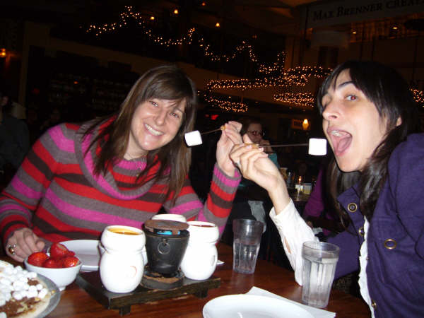 Fuí al que tienen cerca de Union Square, nada más entrar un olor a chocolate increible te pega en la cara y es imposible dejar de babear hasta que acabas de comer. Tienen unos tanques enormes con chocolate y los que entran ganas hasta de bañarse.