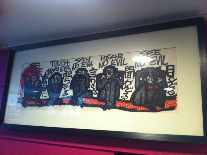El cartelito con la caricatura de los monos del templo Toshogu y Futarasan-jinja en Nikko sigue en el mismo sitio.