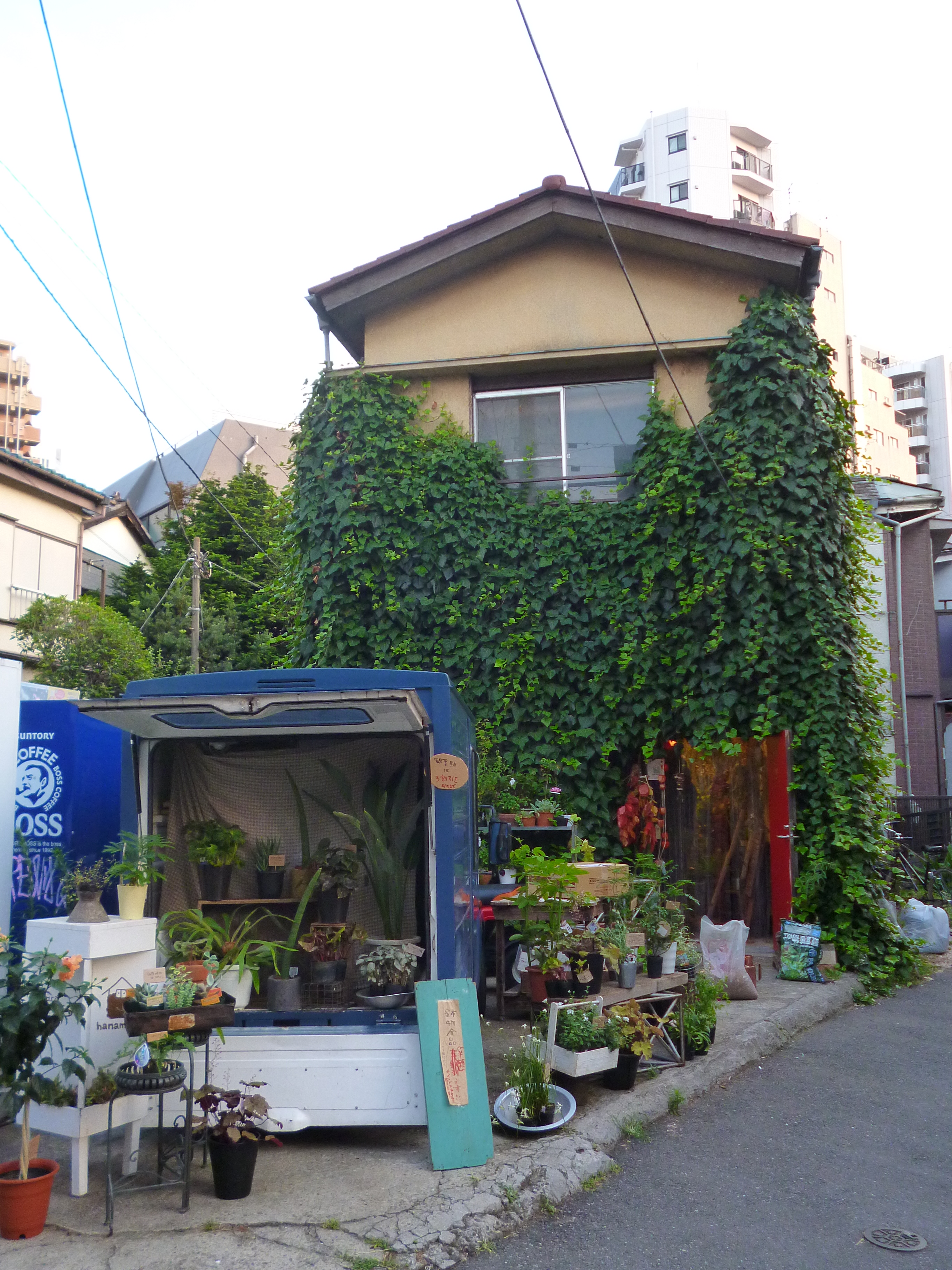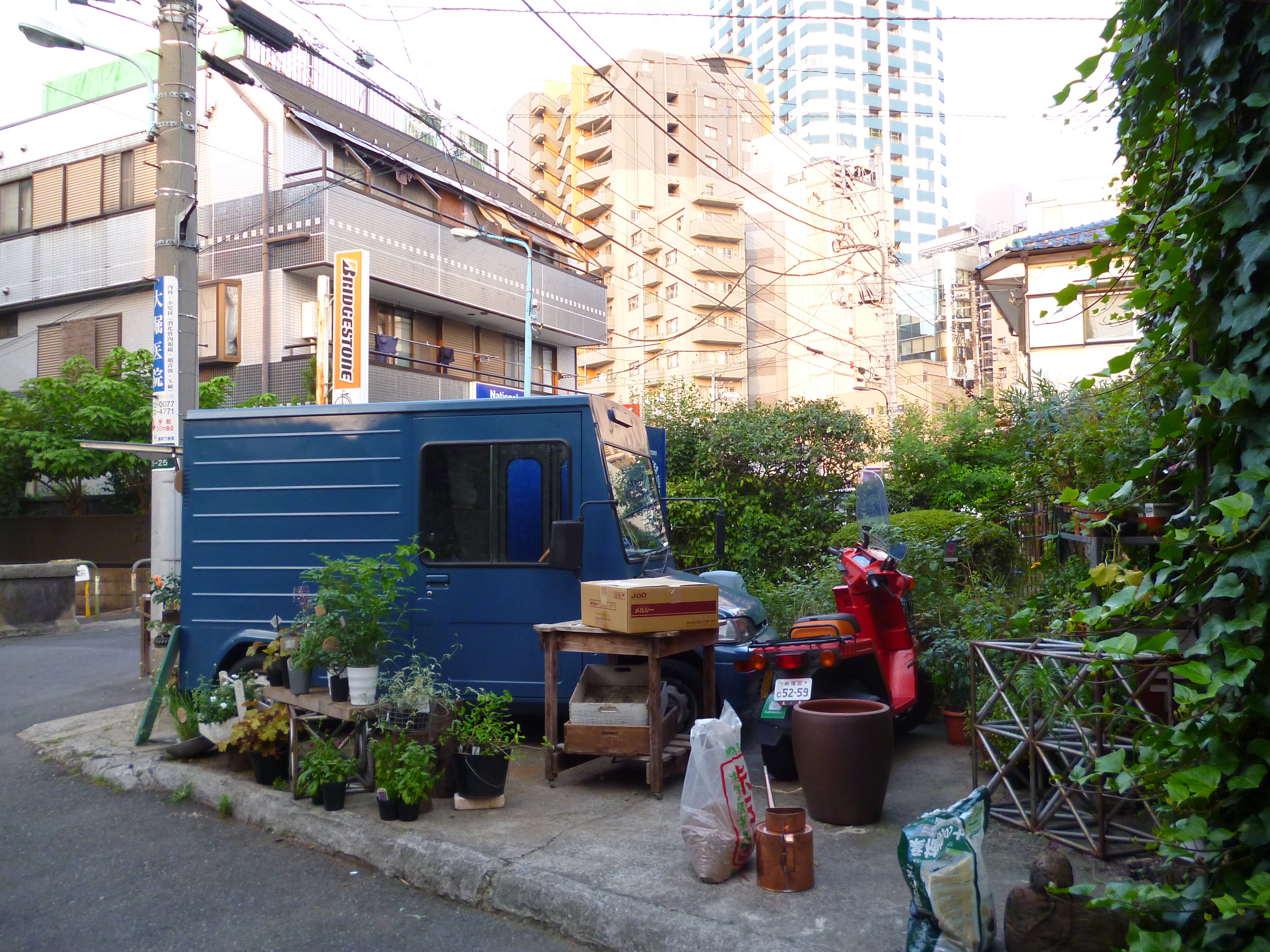 O en una minifurgoneta habilitada para ese motivo se saca parte de la mercancía de esta floristería: Hanamidori, que está al lado de mi nuevo (y si todo va bien) último hogar en Tokyo, en Nishi-shinjuku-go chome, antes de que empiece mis viaje hacia el sur.