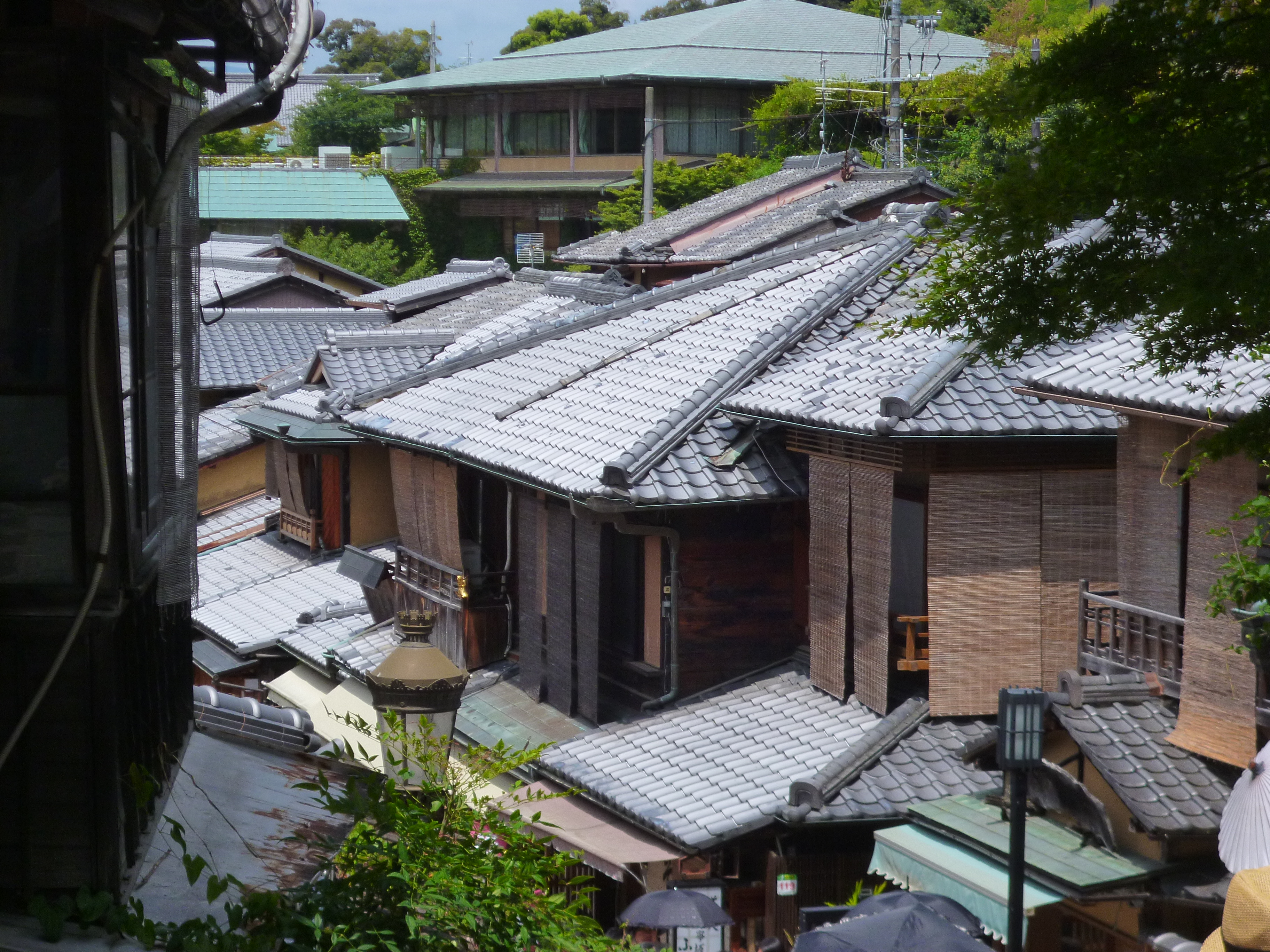 Desde la primera vez que pisé suelo nipón me han fascinado los tejados japoneses. Es una de las cosas que me recuerda dónde estoy y que además me encanta mirar sobre todo en aquellos sitios inclinados donde los diferentes niveles del terreno y añadidos a los múltiples que contiene una casa, crea un paisaje amontonado de tejas de cerámica inclinadas de una forma muy especial y que acaban en una terminación que contiene un círculo decorado con motivos que en ocasiones representan el símbolo de la familia. En este caso de abajo tenemos un crisantemo.
