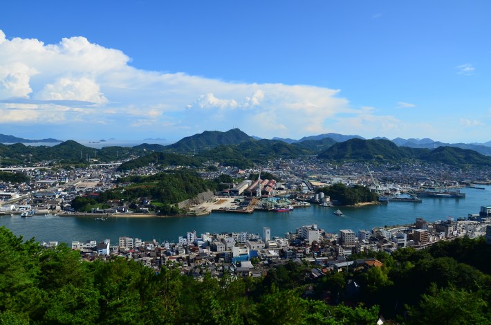 De aquí, tras ir al jardín botánico de los cítricos (ahorrable totalmente), y a la cima de la montaña Takake para ver las vistas, nos dirigimos a nuestro principal objetivo del día: Onomichi 尾道。