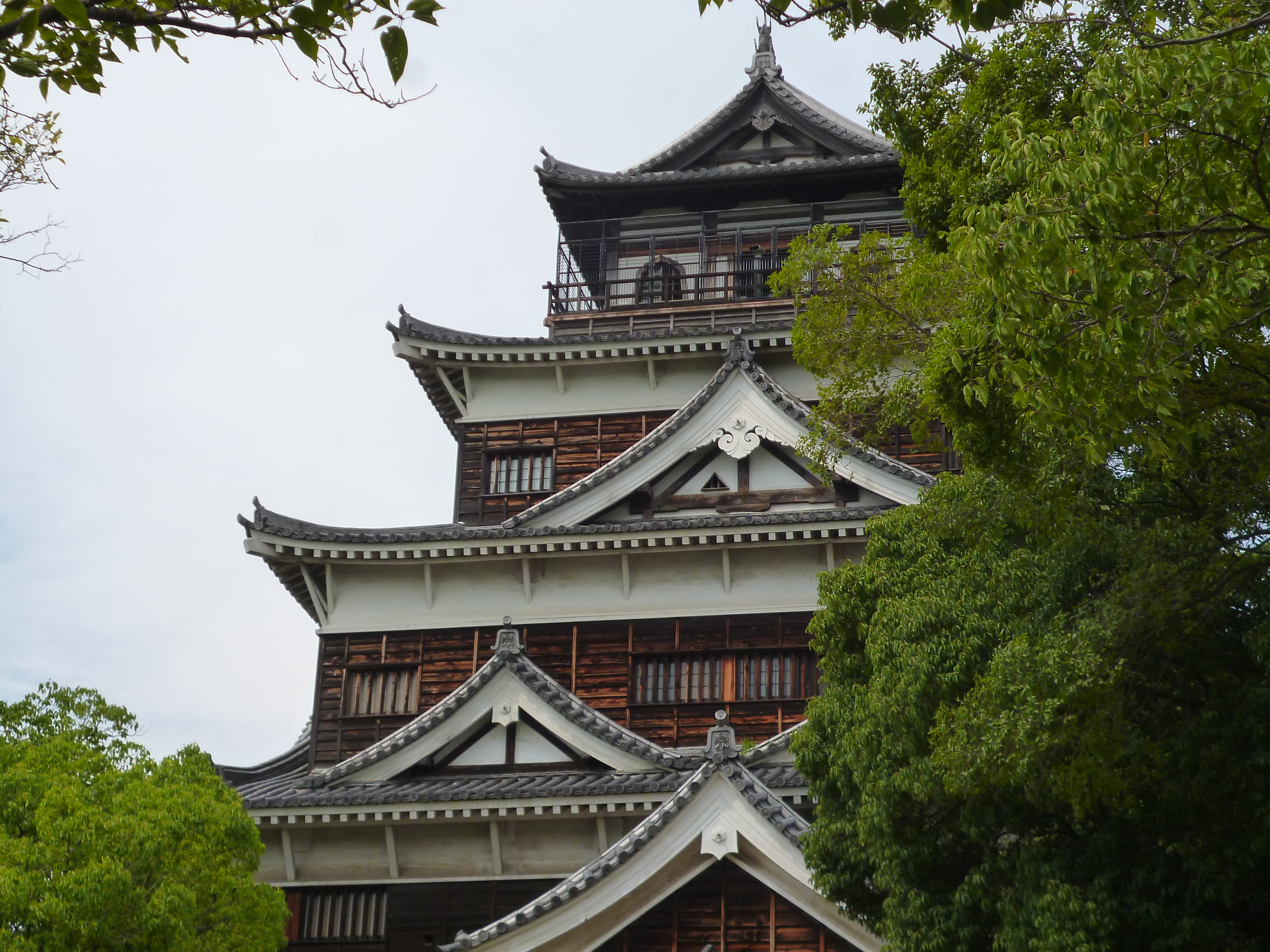 La primera parada después del almuerzo fue para ver el castillo de Hiroshima. Este castillo, llamado popularmente el Castillo de la Carpa, se construyó en 1589, la mayoría desapareció en el periodo de restauración Meiji y lo que quedaba se vio reducido a cenizas a causa de la bomba atómica.