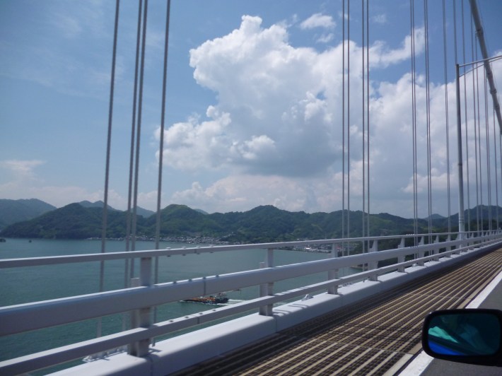 El domingo nos levantamos más o menos temprano y cogimos el coche para seguir una ruta llamada Shimanamikaidou しまなみ海道, una carretera de 60km que une las islas de Honshu y Shikoku y atraviesa algo más de seis pequeñas islas que se encuentran en el Mar Interior de Seto. En la ruta puente a puente íbamos disfrutando del mar.