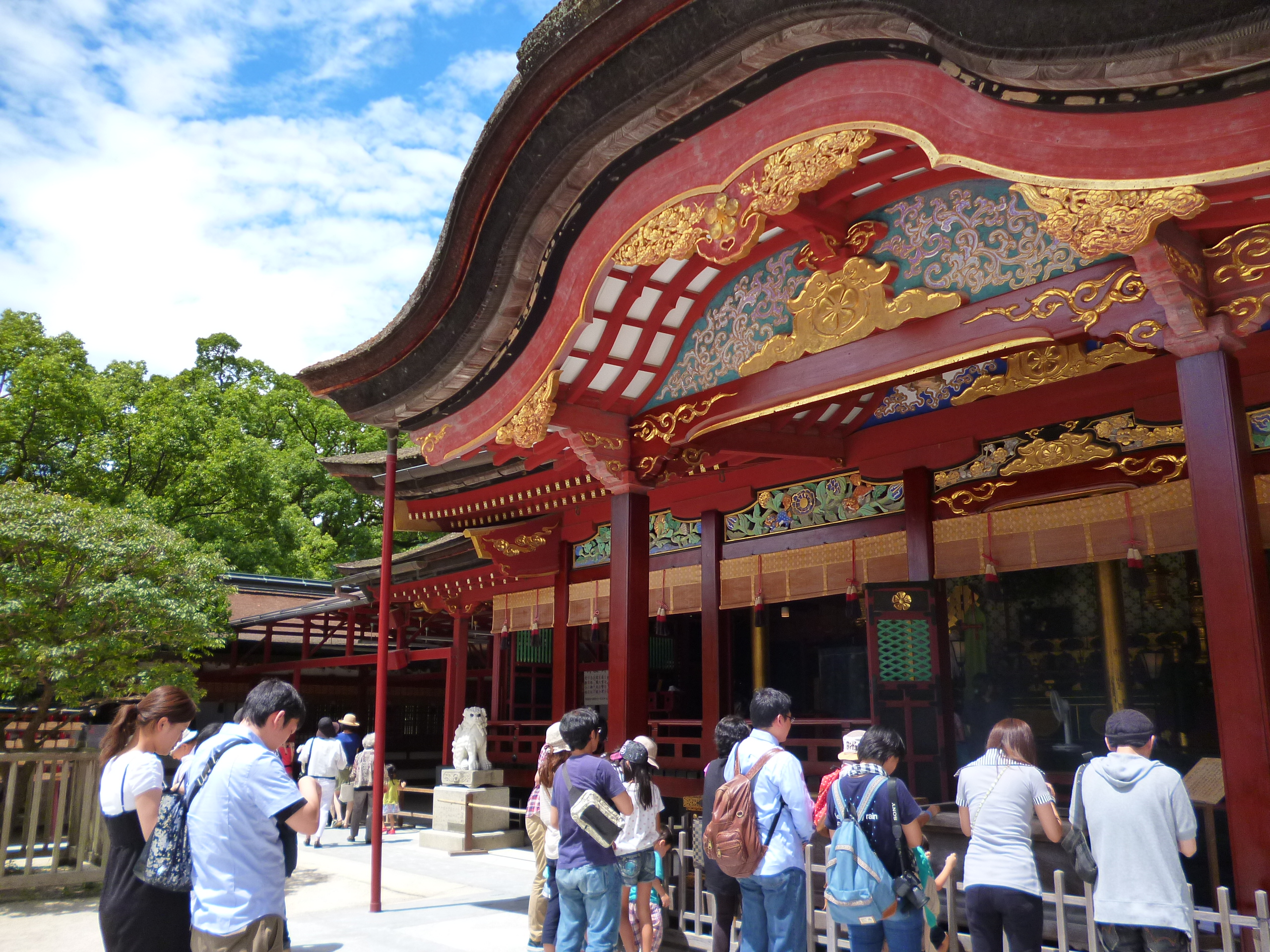 Ya organizadas y dispuestas a ver sitios nuevos y sobre todo a disfrutar de los manjares de la ciudad de la mano de una local (Fumiyo), nos dirigimos a Daifu. Esta ciudad cercana, prácticamente anexa a Hakata, fue en su día el centro de gobierno de la isla de Kyushu. El punto principal es el templo Tenman-gu. El paseo hasta llegar al sitio ya es un espectáculo.
