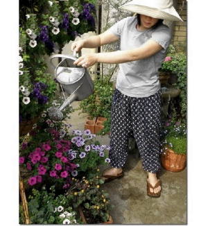 En este pasillo, y antes de pasar por una toori de piedra aprendí que eran los Monpe, unos pantalones un poco bombachos que se solían llevar durante la guerra y que por su forma hacía más cómodo moverse y trabajar, a los cuales se les cosía en el trasero una tela con tu nombre y tu dirección para poder saber quién eras en caso de sufrir alguna desgracia. El tejido tradicional de los mismos es muy típico.