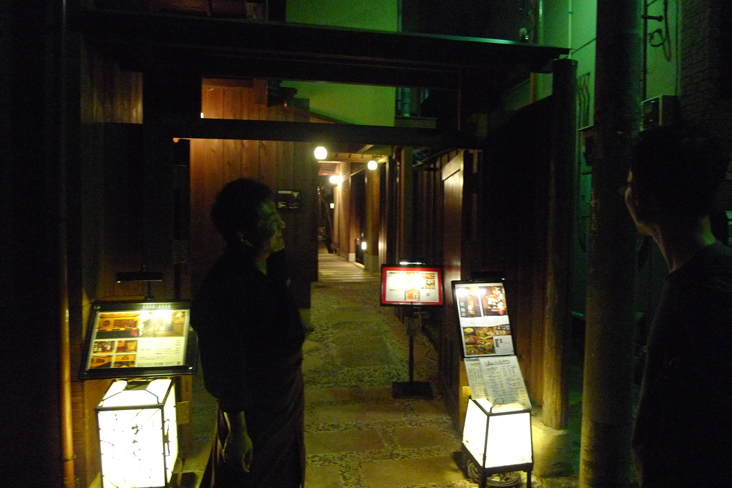 Caminamos por la Supein Zaka y llegamos a una zona apartada del bullicio en el que se encontraba una izakaya con muy buena pinta. Yoshi quería llevarnos allí para cenar y la verdad es que al entrar en el sitio y ver el ambiente me dió mucha pena no poder conseguir mesa o barra para quedarnos allí. Otra vez sería.