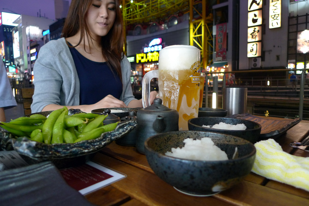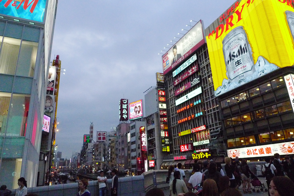 Solo una tarde y una noche, pero al menos podríamos coger un poquito del ambiente de Ôsaka. Allí habíamos quedado con mi amigo Hide, un chico medio japonés medio norteamericano que conocí por trabajo en una feria en Las Vegas. Él y su chica nos guiaron por Dôtonbori, menudo ambientazo y que pasada ver a tanta gente un día entre semana con sus amigos y sus compañeros trabajo de camino a los bares y sentados en las terrazas que dan al canal.
