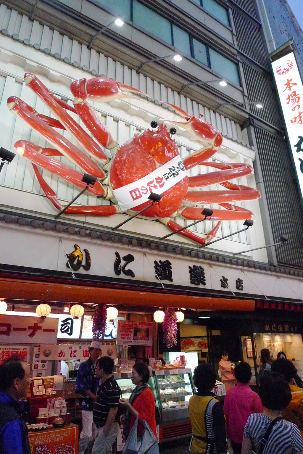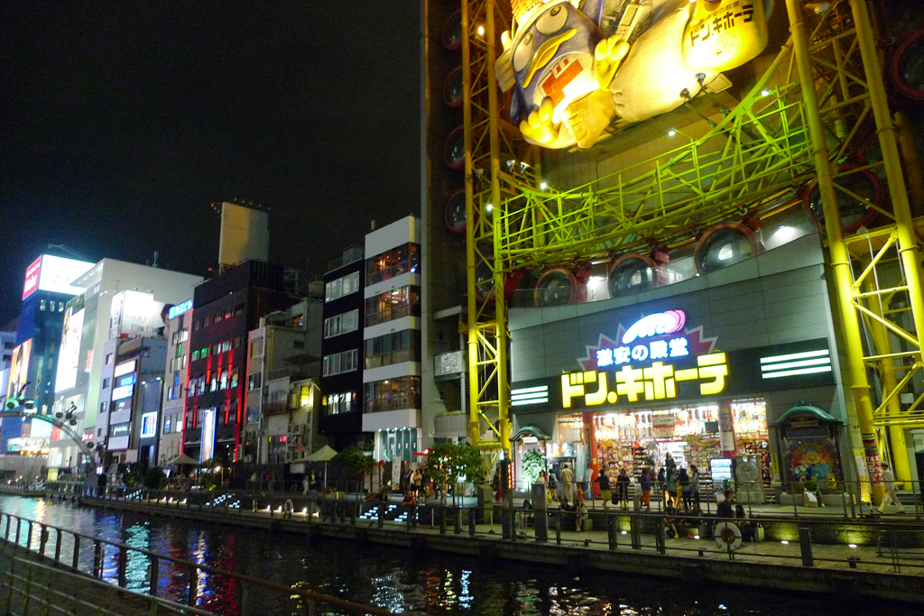 Y en esta ciudad también hay que decir que les encantan las figuras de cartón piedra enormes. Yo que pensaba que era solo el cangrejo lo que encontraría, y ¡que va! Sushis gigantes, fugus enormes colgados de las puertas del restaurante, el pingüino de la cadena de tiendas Donki (Donkihote).