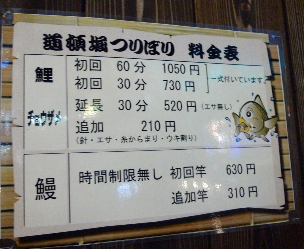 Pues no te sabría decir, hace de eso ya casi dos añitos, pero estaba en Dotonbori en el margen del río casi frente por frente del Donki (Donkihote-ドンキホーテ). Con eso ya no tendrías pérdida, con terracita al lado del río aunque se puede entrar también por la calle paralela.