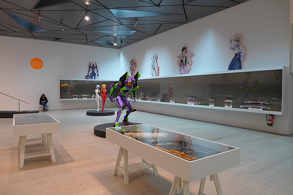 Hace un tiempo, en un encuentro con algunos de mis alumnos de japonés uno de ellos comentó que para él hay ciertos videojuegos que son arte. Viendo la exposición podía intuir algo de lo que se refería mi alumno. La complejidad a la que puede llegar un universo tan elaborado como el de una serie como Evangelion o en una menor medida en cuanto a cantidad (que no en calidad) Death Note las acercan a algo que podría ser parecido a arte con sus códigos, su literatura, su escultura hecha figuras, … De los primeros veintiséis episodios Evangelion surgieron diversas ramas entre las que se incluyeron publicaciones de series manga, películas y videojuegos que complementaron y/o ofrecieron realidades alternativas de la historia.